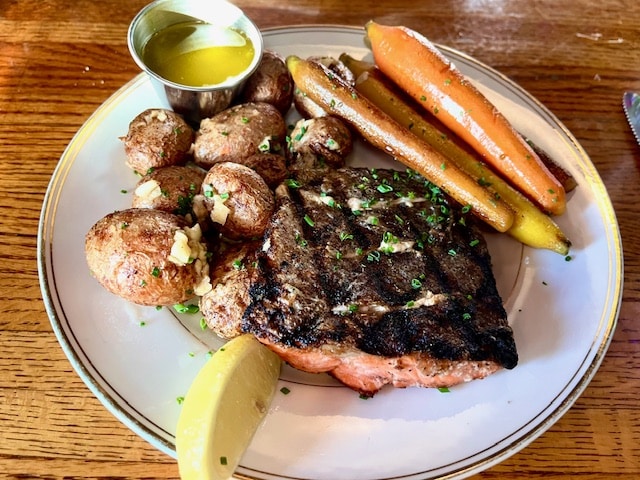 IMG_5216 Published November 5, 2025 at 640 × 480 in Barnacle Bud’s beachy restaurant to be Gene’s Supper Club for the winter The Sockeye Salmon Dinner Plate at Gene’s Supper Club This is the sockeye dinner plate that Chris the manager recommended.