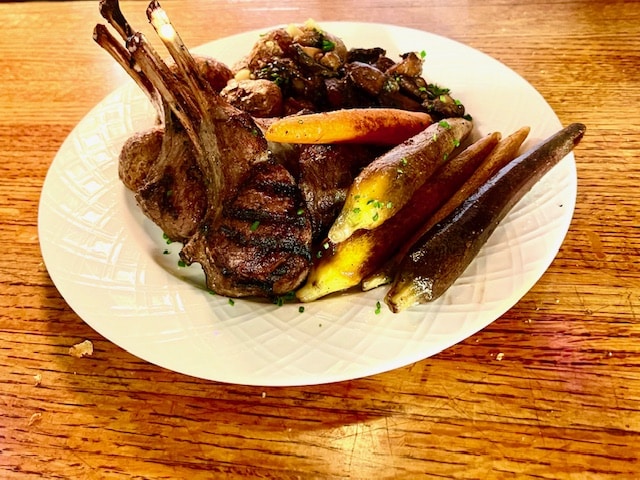 IMG_5217 Published November 5, 2025 at 640 × 480 in Barnacle Bud’s beachy restaurant to be Gene’s Supper Club for the winter Lamb Chop Dinner at Gene’s Supper Club Beautiful and perfectly roasted lamb chops with vegetables